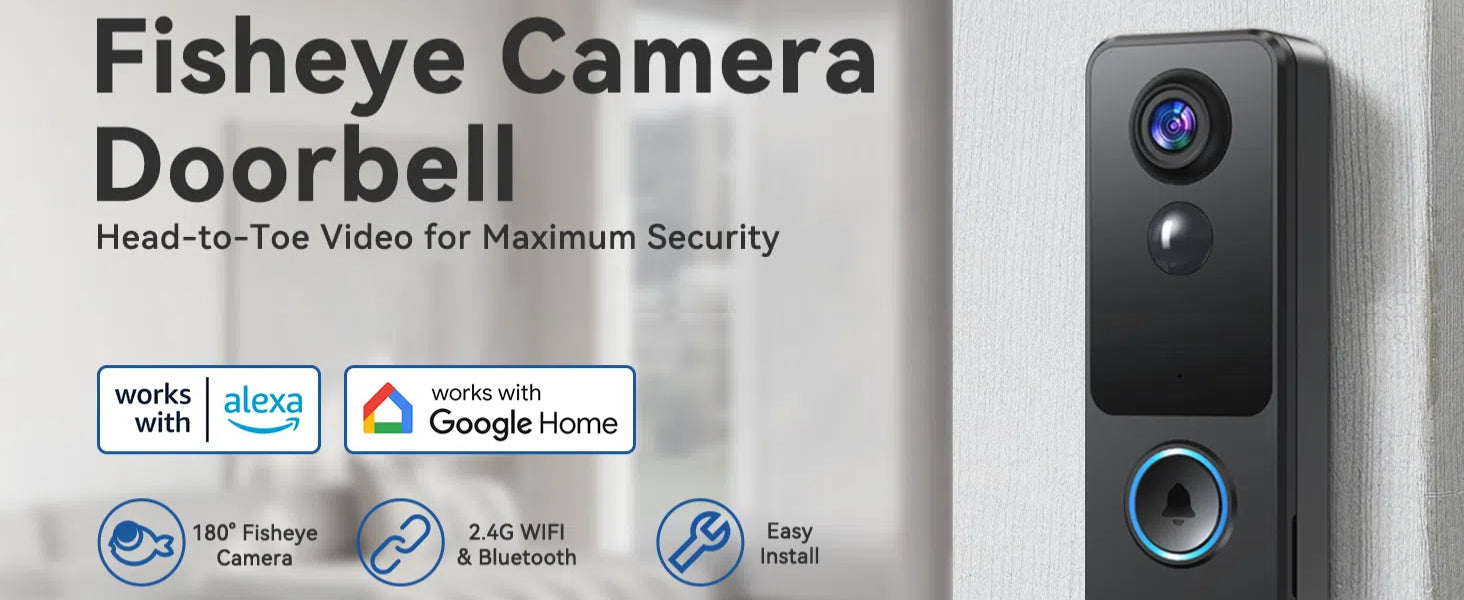 Most doorbell cameras have blind spots, but the MUBVIEW Wireless Doorbell Camera features a 180° ultra-wide fisheye lens that lets you see head-to-toe views of visitors and packages at your doorstep. No more missed deliveries or hidden dangers!